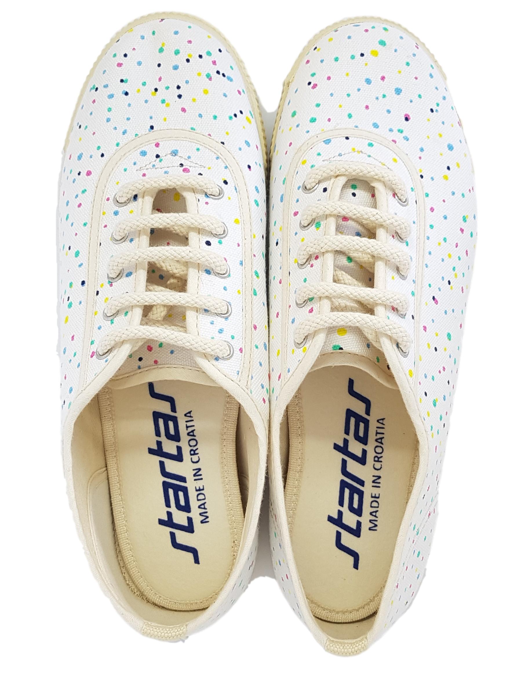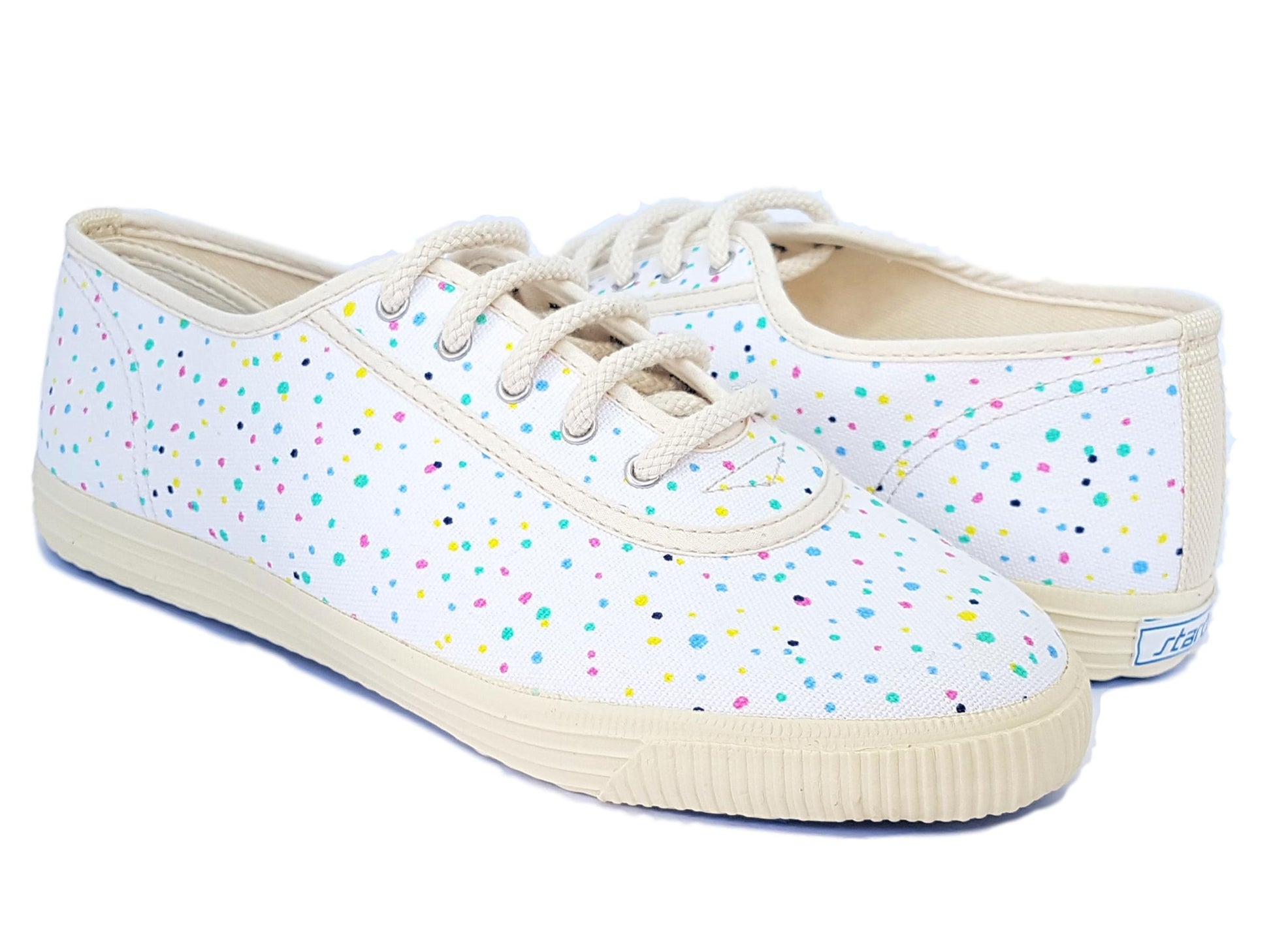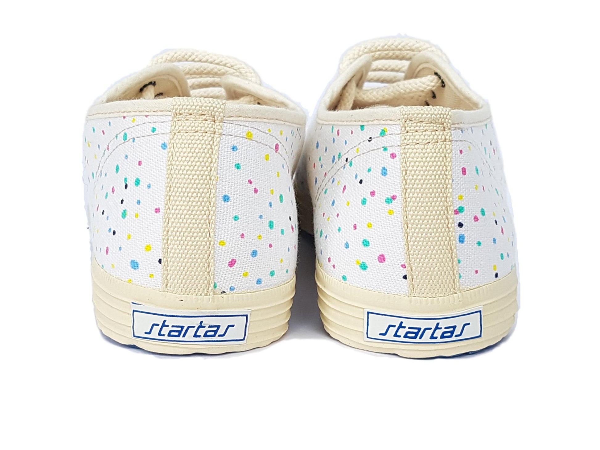 Step into sunny days with the Happy Canvas shoe, crafted by hand from natural materials. These classic canvas kicks feature a soft neutral base sprinkled with tiny, colorful dots—perfect for adding a splash of fun to any outfit. Lightweight and breathable, they keep your feet comfortable while expressing your unique style with a playful pop of color.